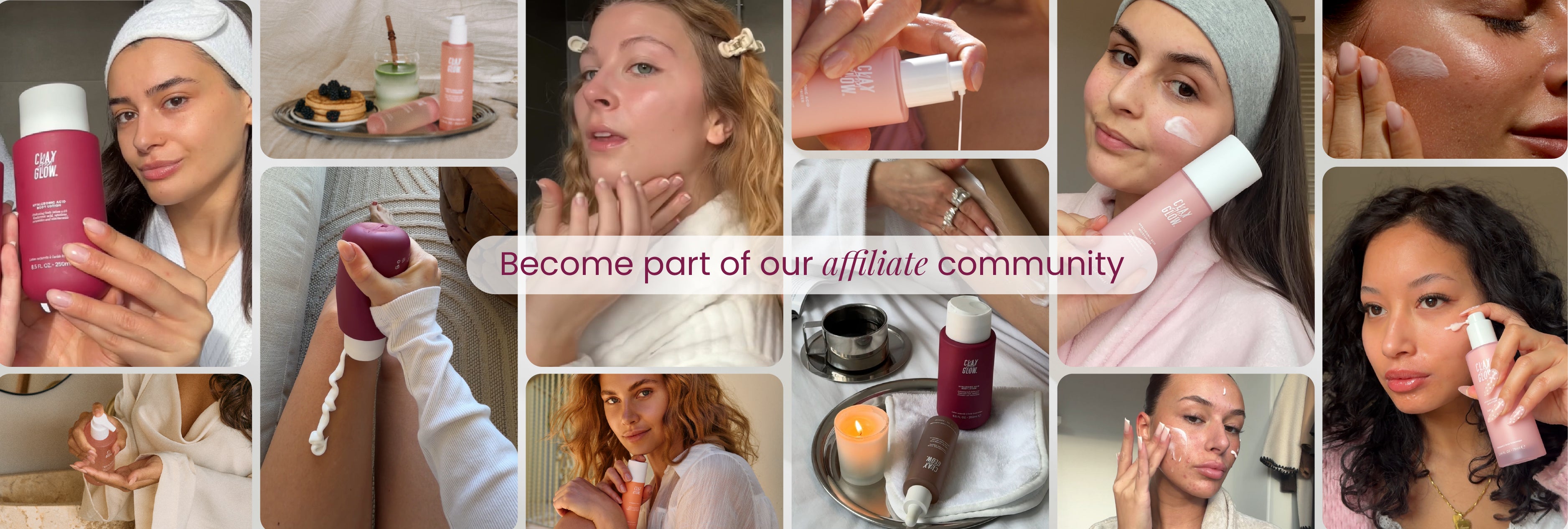 As a Clay And Glow affiliate creator, you’ll receive free products, join our exclusive monthly challenges, and earn commission while growing with us.