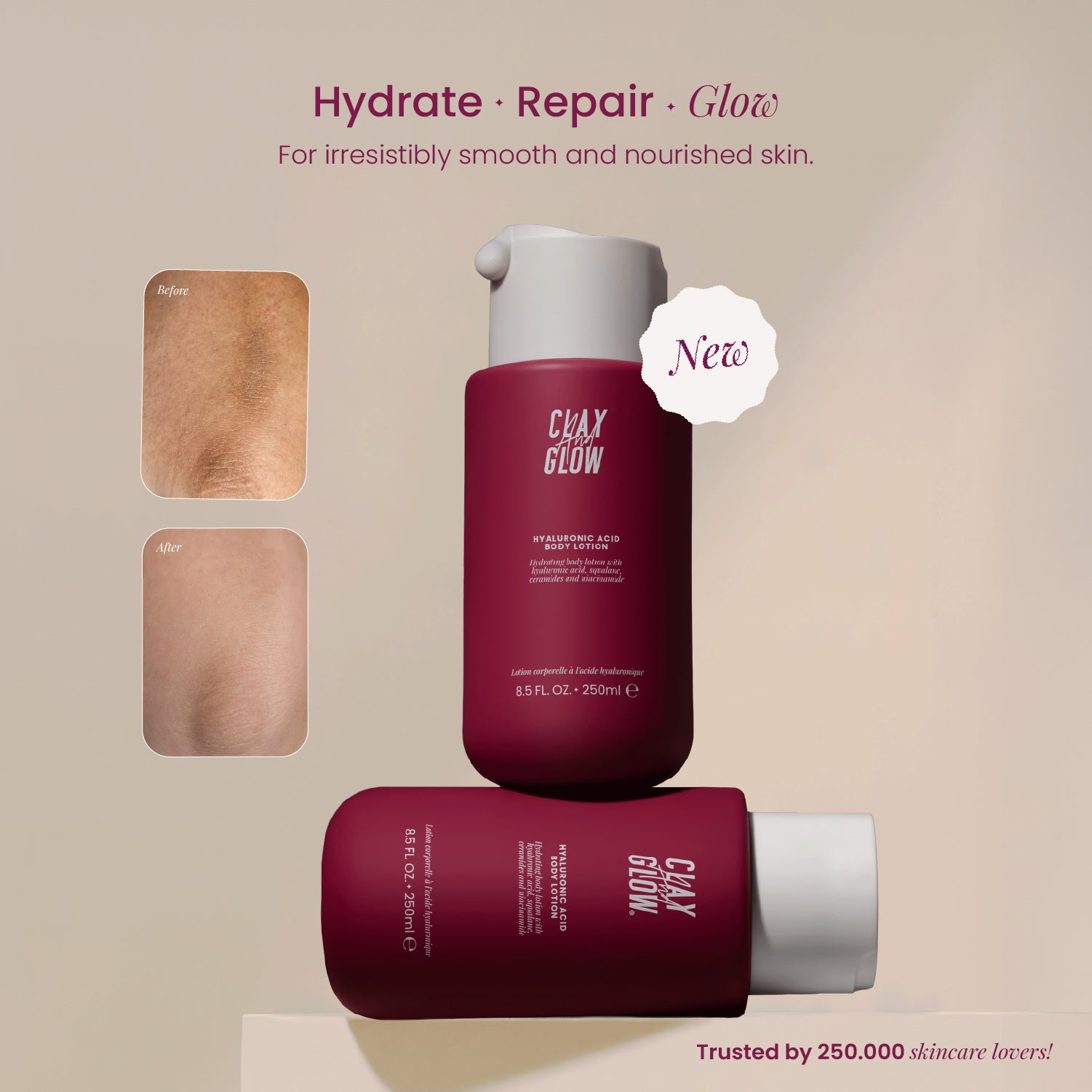 Our first-ever Body care set is your daily essential for soft, hydrated, glowing skin. This 3-step set combines the Triple AHA Cleanser, Hyaluronic Acid Tanning Drops, and the new Hydrating Body Lotion to create a simple, effective bodycare ritual. With nourishing ingredients like hyaluronic acid, niacinamide, ceramides, squalane, and shea butter, it deeply hydrates, smooths rough patches, and improves skin tone and texture.