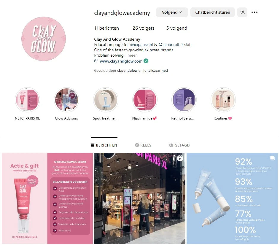 Voor alle medewerkers van ICI PARIS XL hebben we een exclusieve Instagram-pagina: @clayandglowacademy. Hier vind je uitgebreide informatie over onze producten, handige tips,en diepgaande tutorials om je kennis te verrijken. Volg ons om meer te leren over onze skincarelijn en hoe je onze producten het beste kunt presenteren en verkopen. Samen zorgen we ervoor dat jij en je klanten het beste uit Clay And Glow halen!